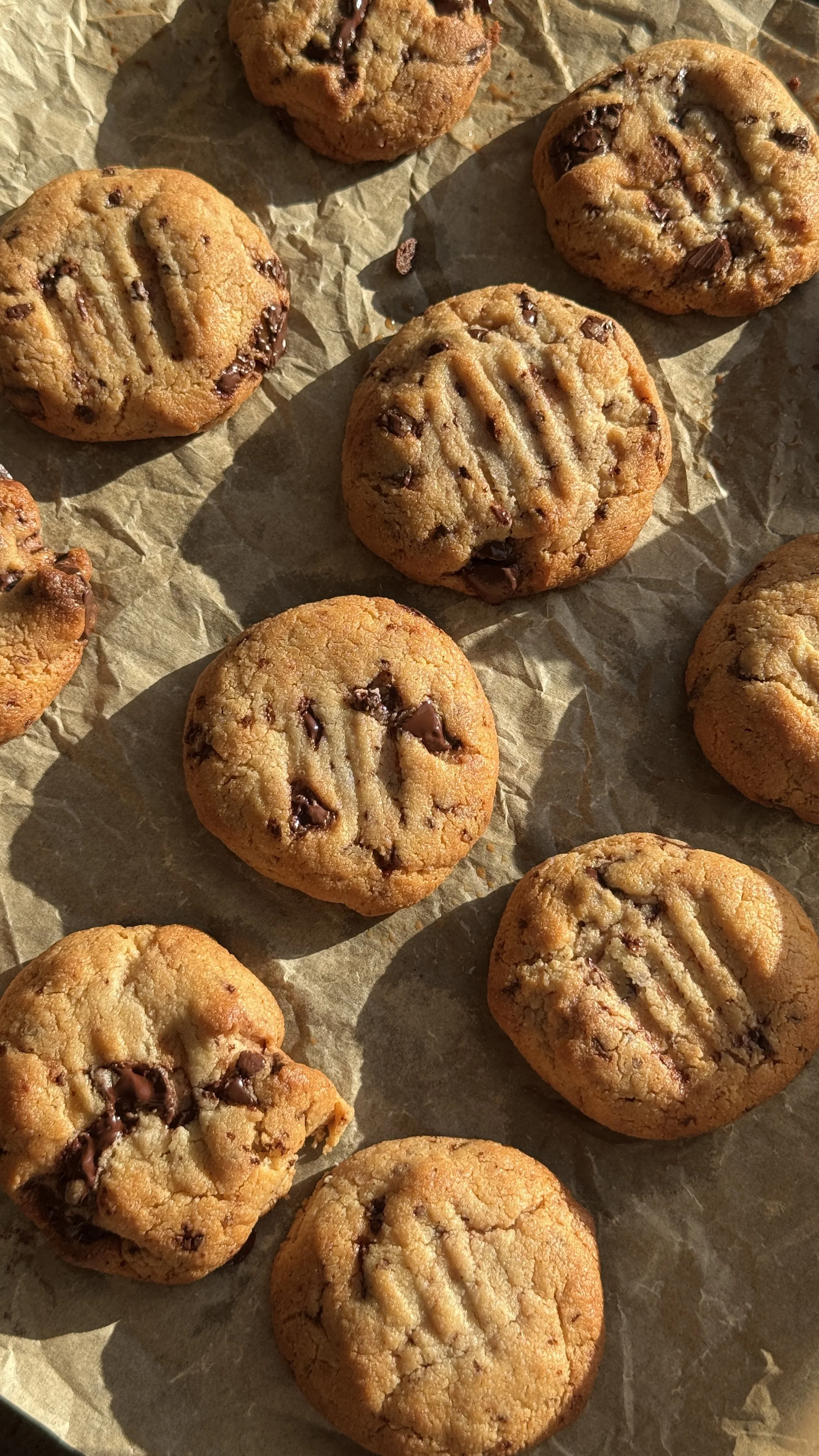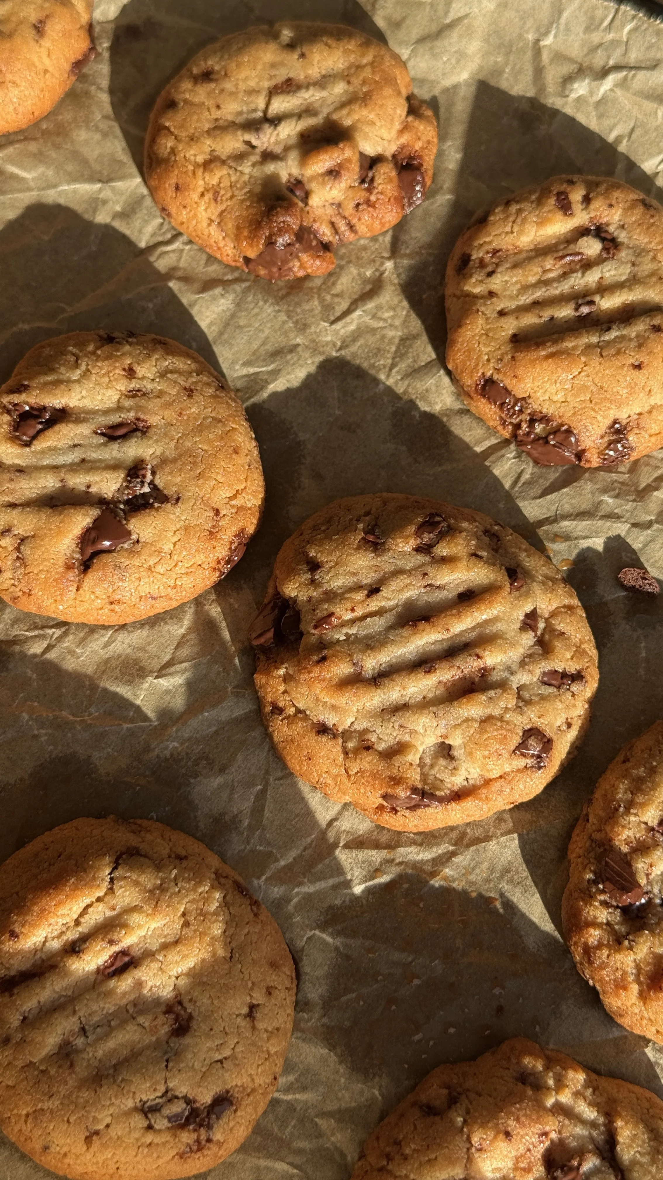 (optimal) pop in the fridge for 20 minutes to harden slightly [minimises spreading while baking]